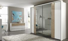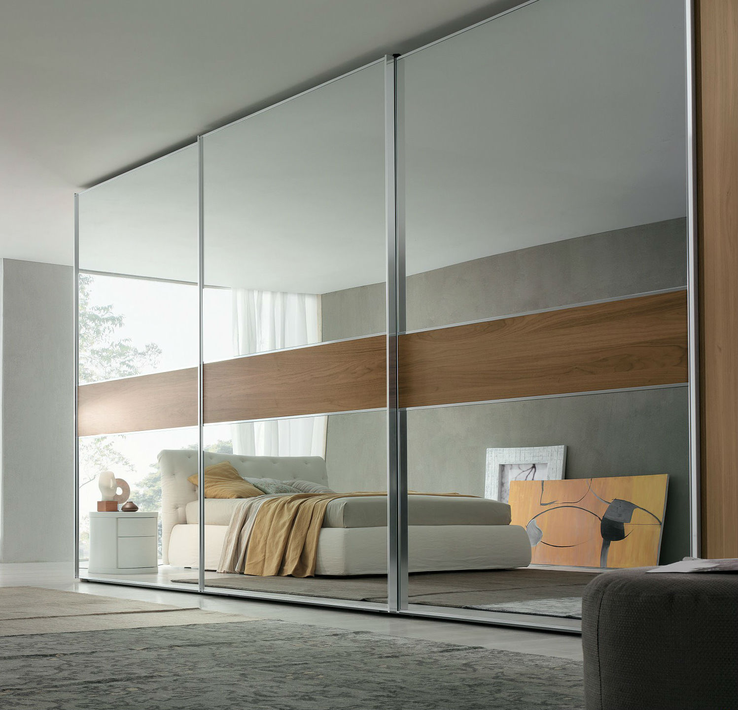 Все материалы можно комбинировать друг с другом, что позволяет находить интересные решения для дизайна шкафа-купе.